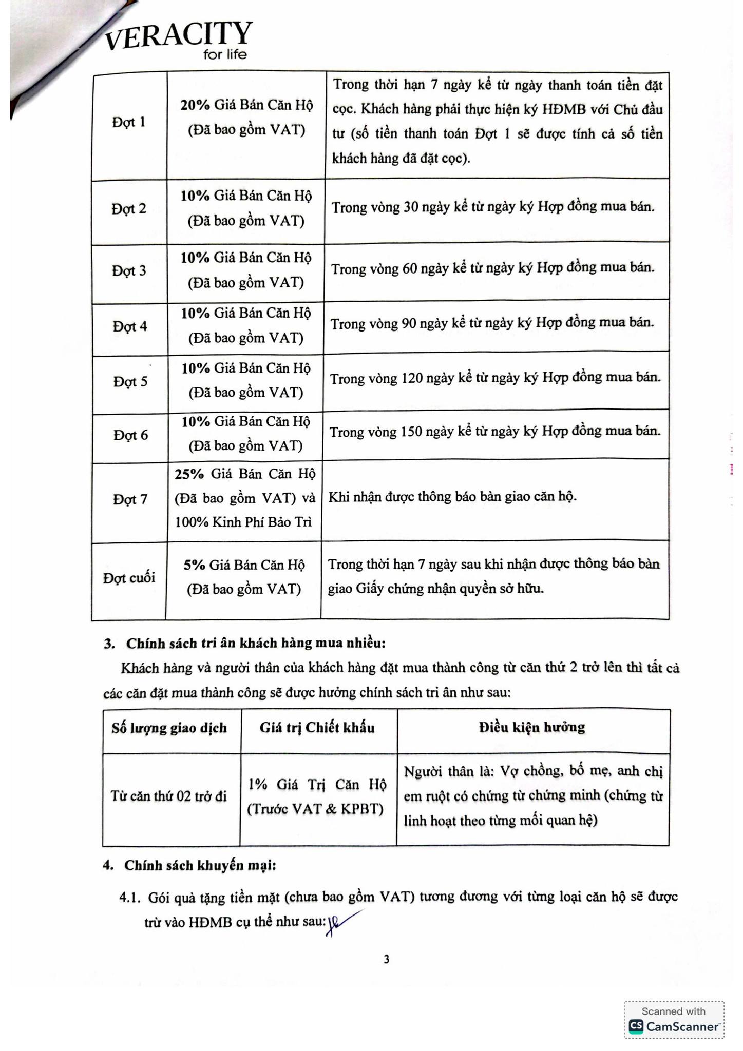 - Chiết khấu 3% dành cho những khách hàng chọn phương thức thanh toán theo tiến độ. Chính sách này giúp giảm áp lực tài chính trong quá trình hoàn thành các giai đoạn thanh toán, phù hợp với những ai muốn chia nhỏ các khoản chi phí.